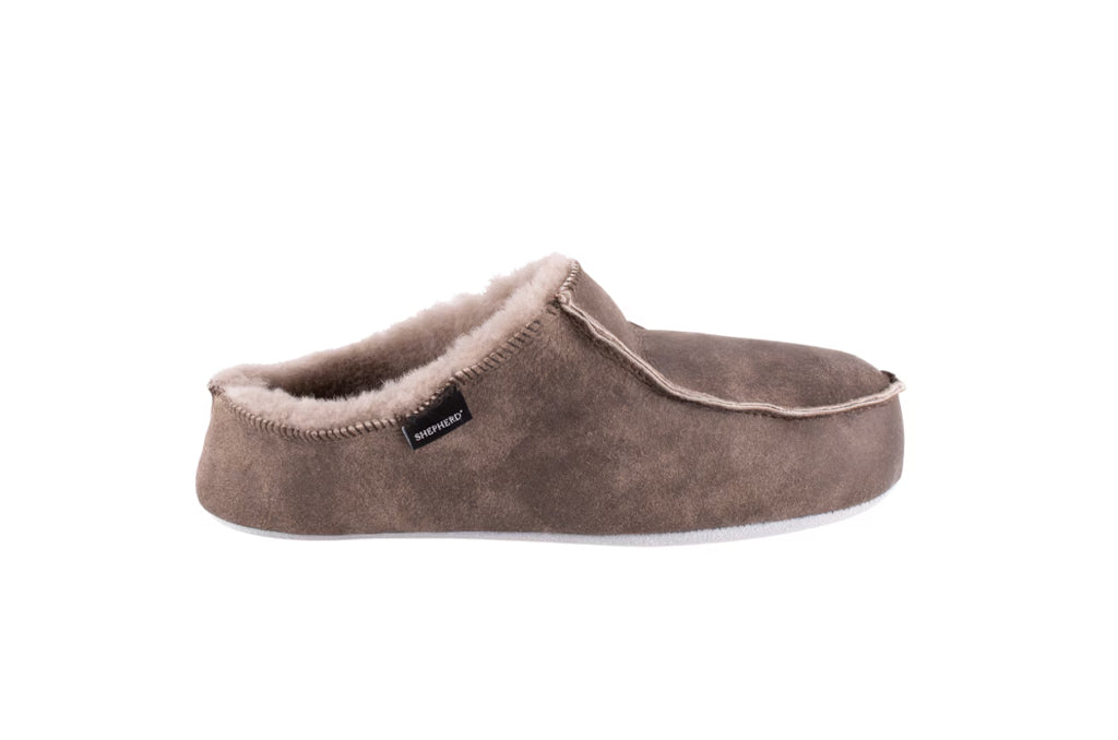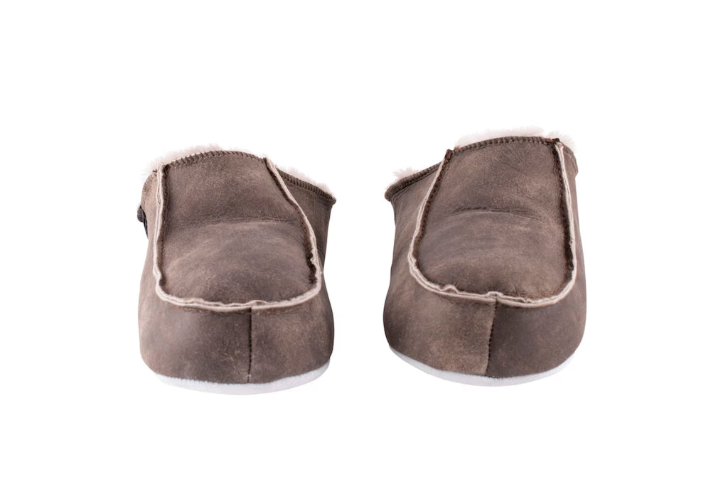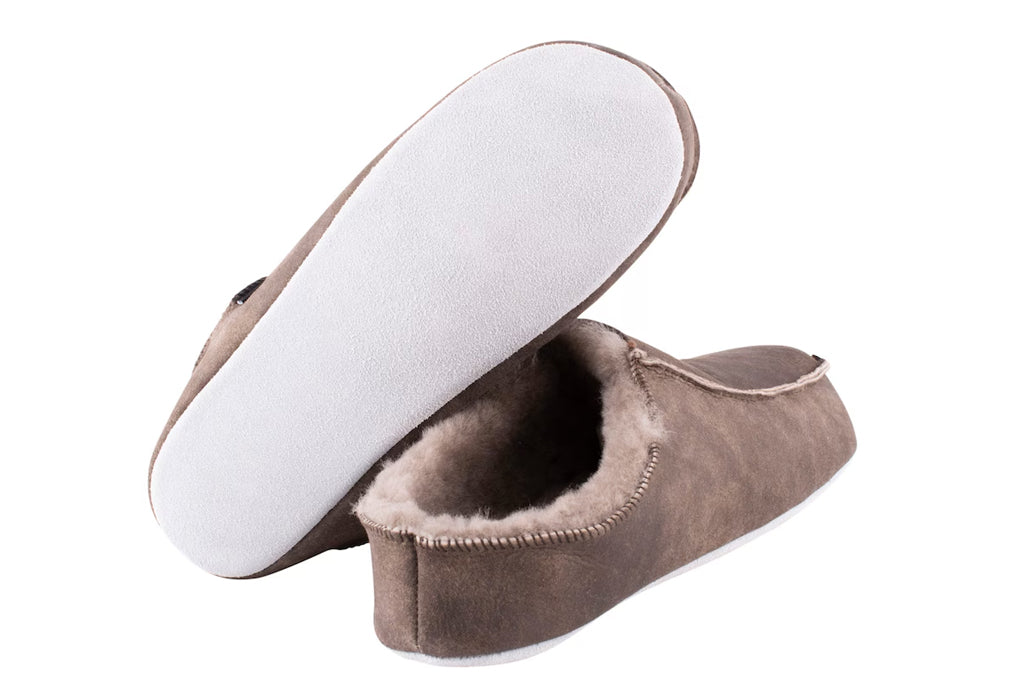 Antique Stone Birro Slipper. These sheepskin slippers are a low ankle design which it makes it easier to slip in. It has a soft suede sole providing great comfort. Perfect for those who want something simple and comfortable to slip into.