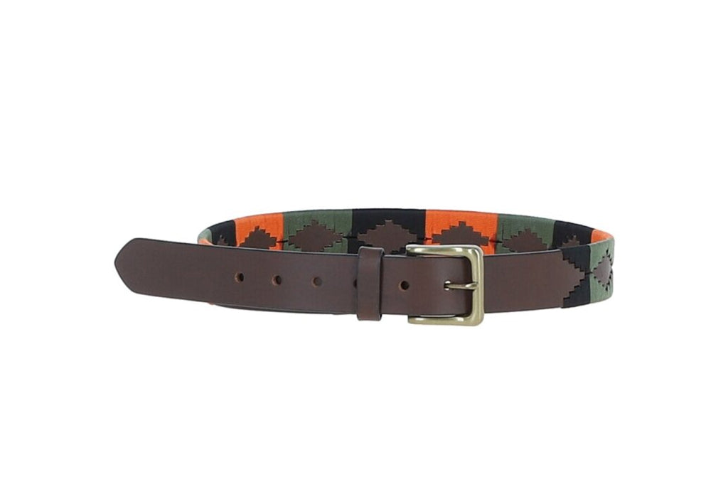 Ashwood Luxury Leather Polo Belt - Orange/Green/Black