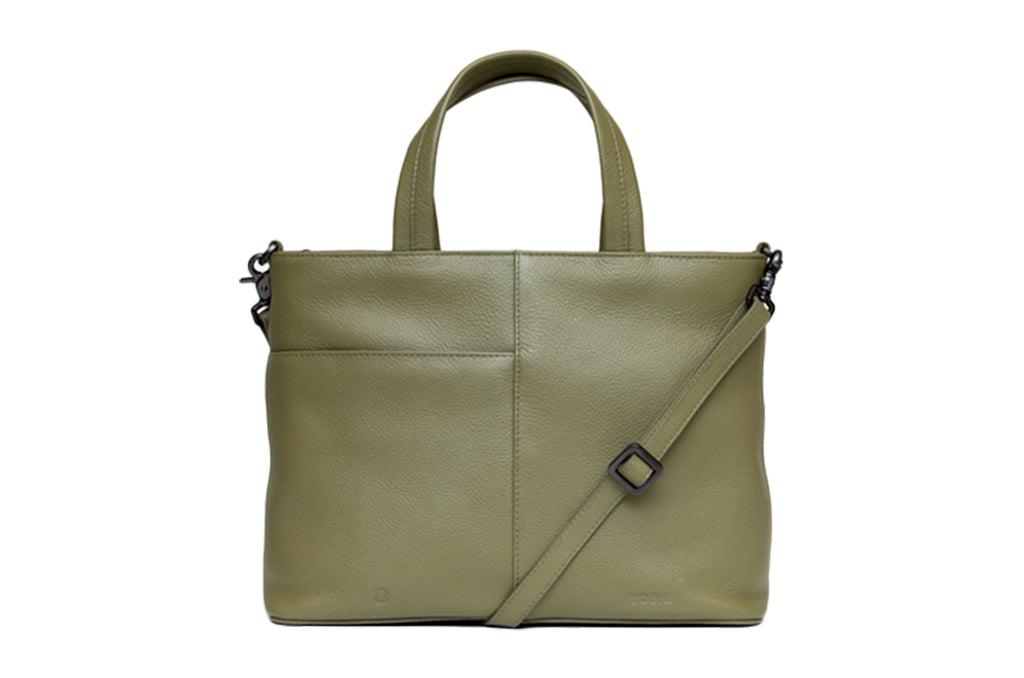 New Yoshi Olive Jane Austen Leather Multiway Grab Bag. Designer bag made with beautiful soft leather, very versatile and perfect for day to day uses.